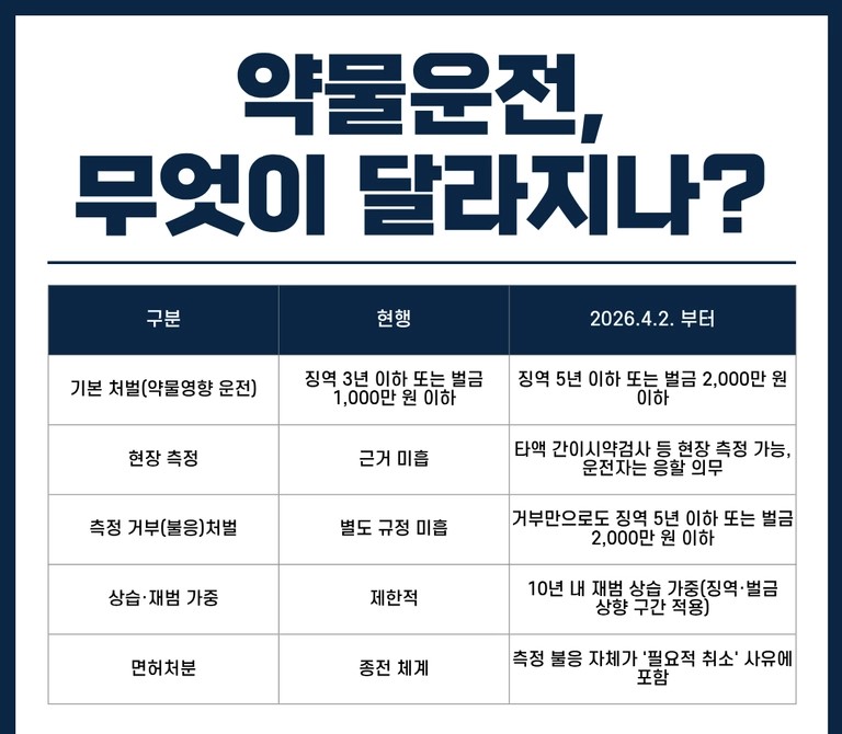 2026년부터 약물운전 처벌 강화