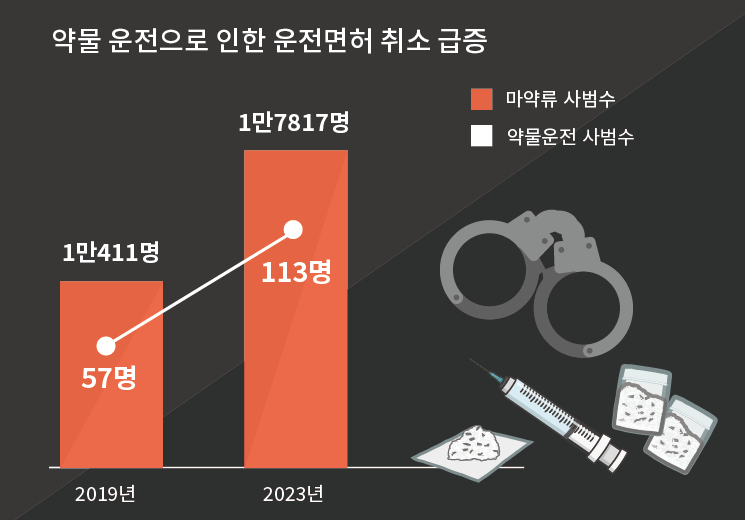 반응속도 저하로 교통사고 가능성이 급격히 높아지며, 실제로 약물운전으로 인한 면허 취소 건수는 2022년 80건에서 2024년 160건으로 두 배 증가했습니다.