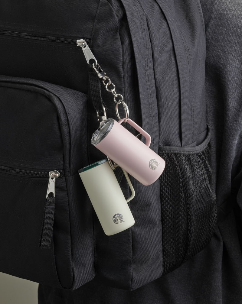 색상은 시그니처 미니어처 텀블러 키링과 핑크 미니어처 텀블러 키링 두 가지로 구성돼요.