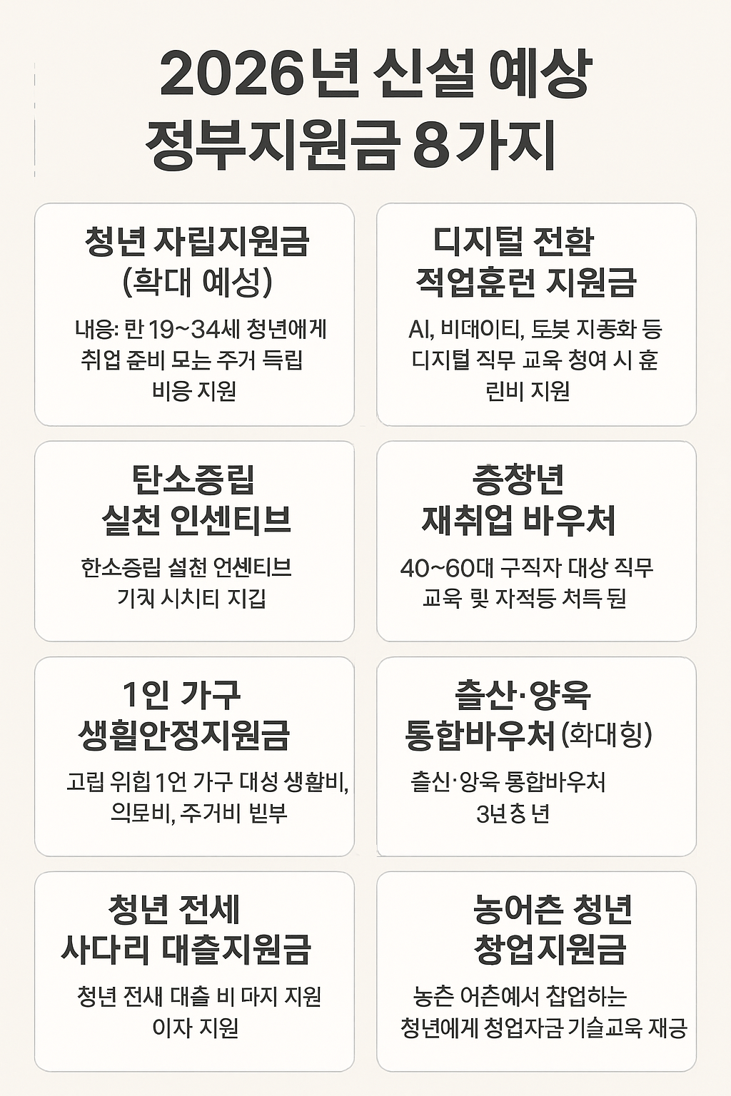 2026년 새로 생기는 정부지원금 8가지… 나도 받을 수 있을까?