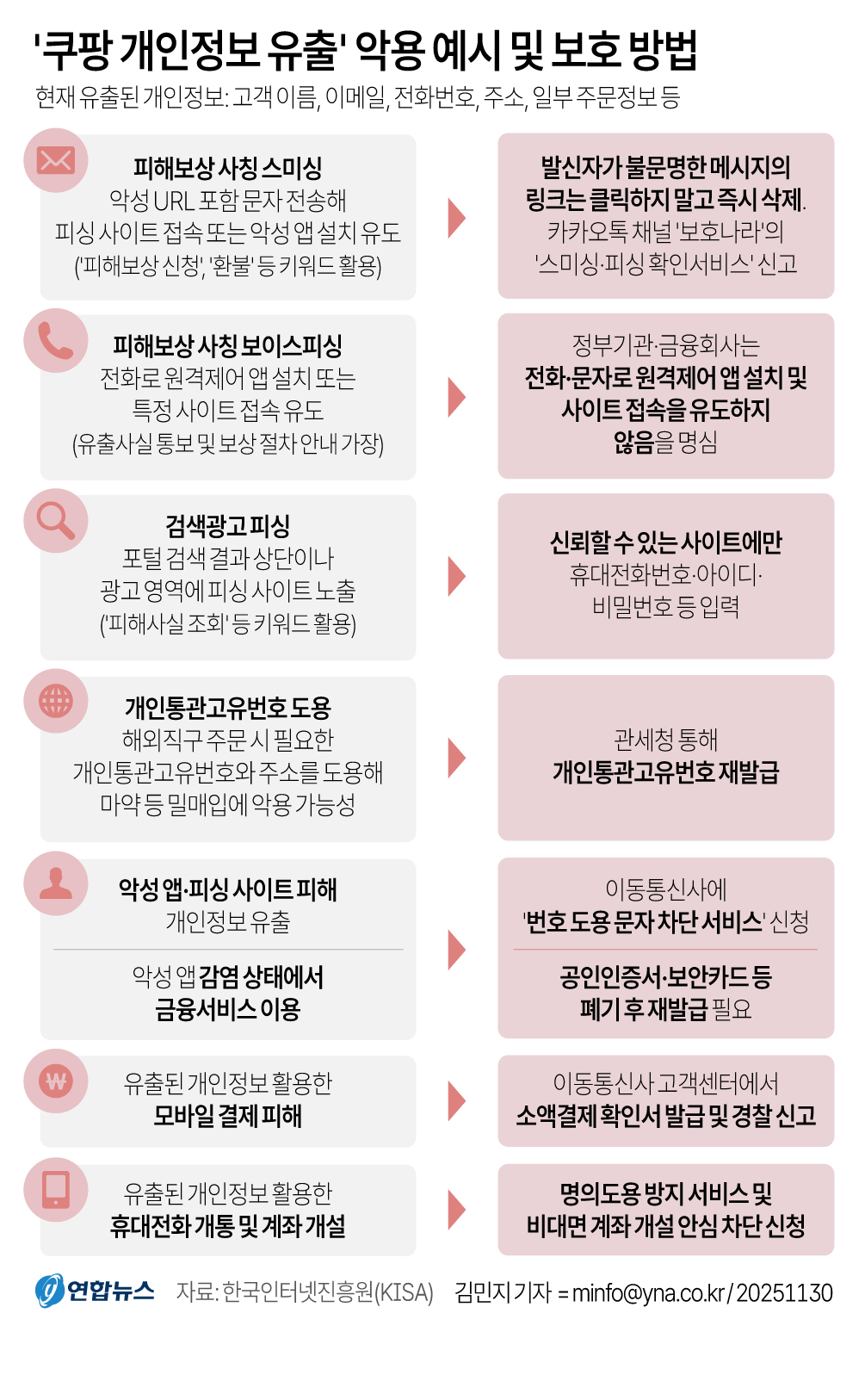 - 유출된 정보만으로도 보이스피싱·스미싱 정교하게 시도 가능