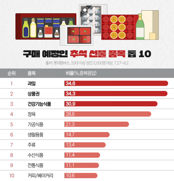 2) TOP 5 중 수령자에게 맞는 축(과일·한우·건기식·가전·친환경/주류)을 하나 고정해요.