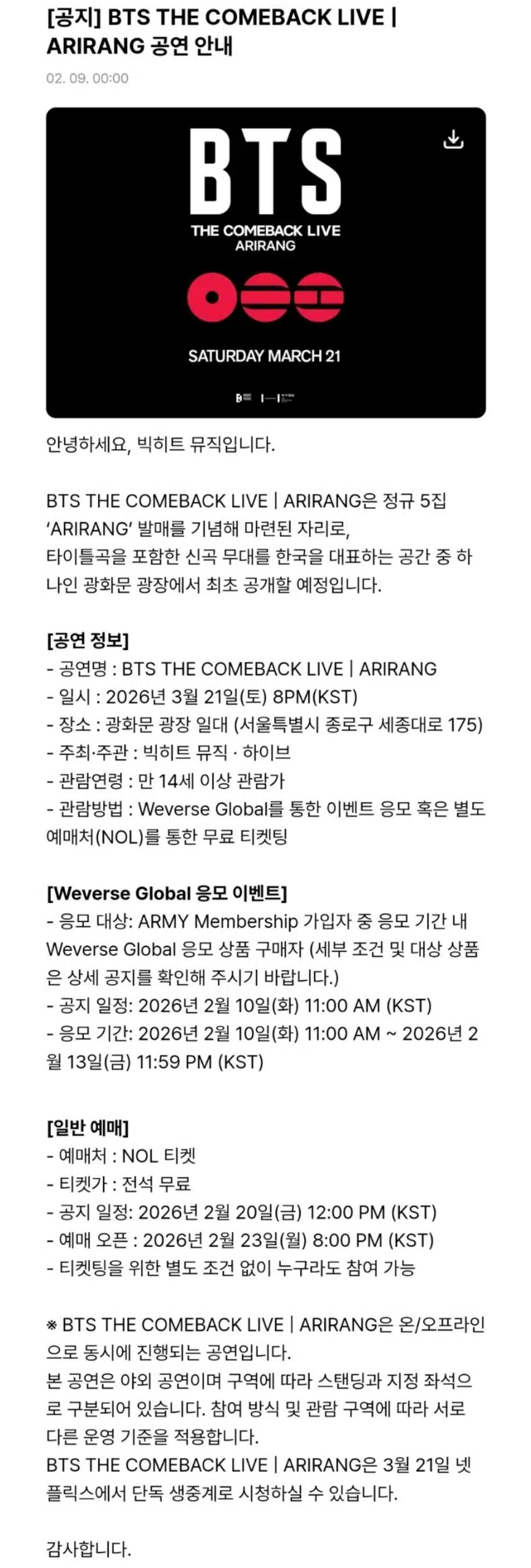 하지만 “BTS 광화문 온라인 생중계”의 다시보기 제공 여부는 아직 명확한 정보가 없어요.